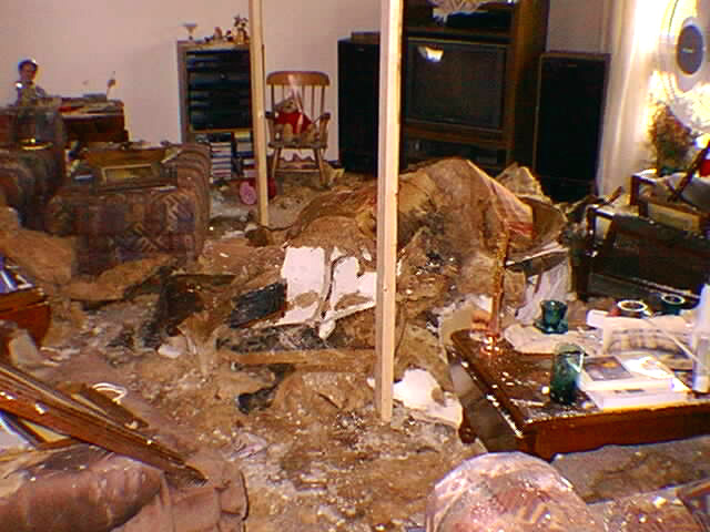 Here is some damage caused by the tornado that passed through Clio, MI on July 2, 1999. To see the home re-built go to our before & after photo gallery on the main page and click on "before & after"