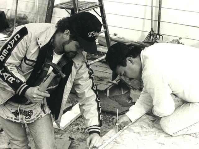Rick Crandell and Mike Rinks figure out some building calculations at a job site. This photo was taken in 1992 when Rinks Construction was in its early stage of growth.