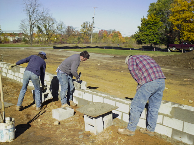 Block layers begin the 6440 Sq. Ft. building. The new store will take the place of the existing one in the Clio Plaza. The new location should be open by Febuary of 2000.